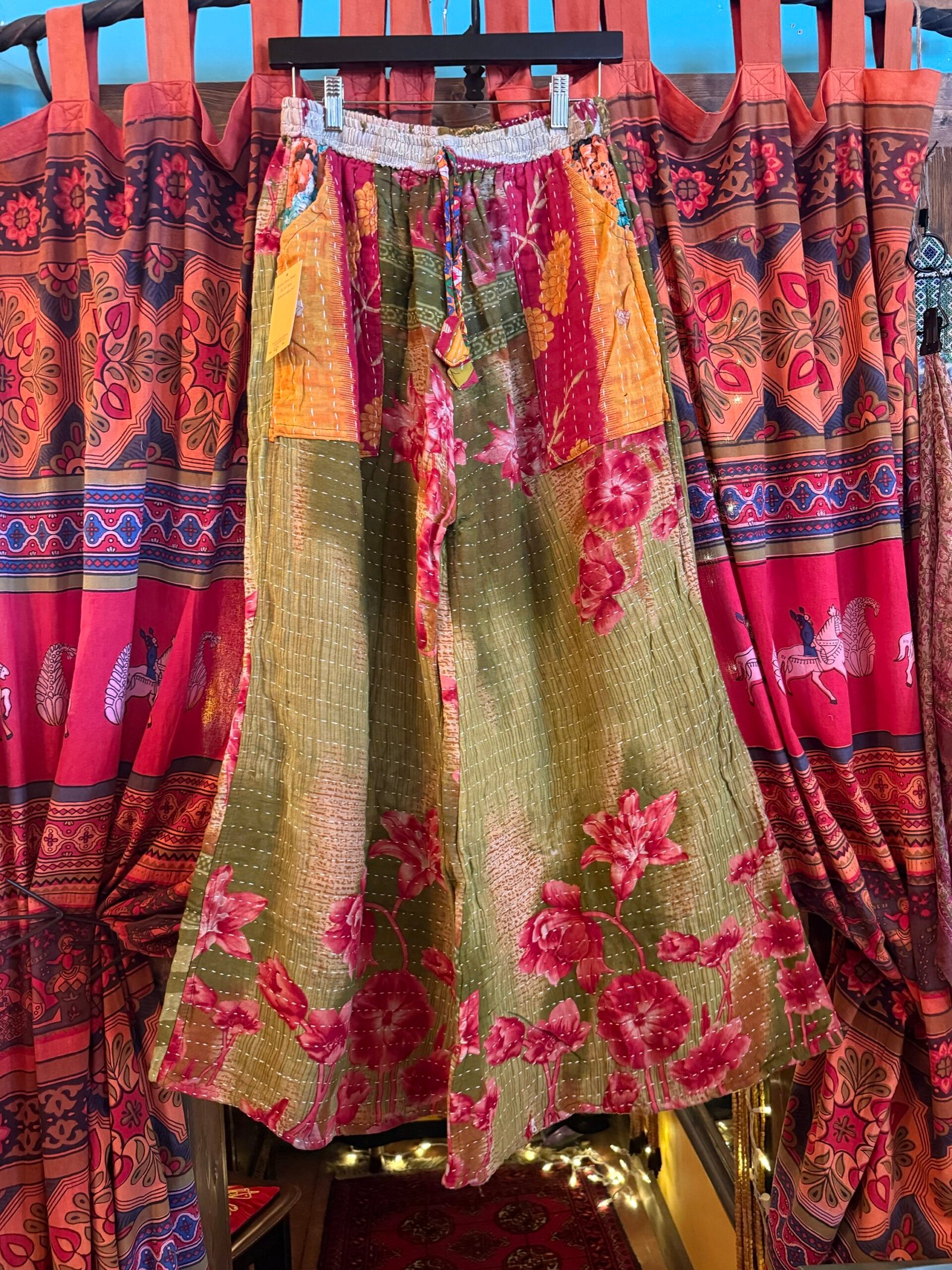 Two for the price of one! These deliciously comfortable kantha pants have a wide leg, pockets on both sides, 100% cotton. So much color you can’t help but feel great wearing these!