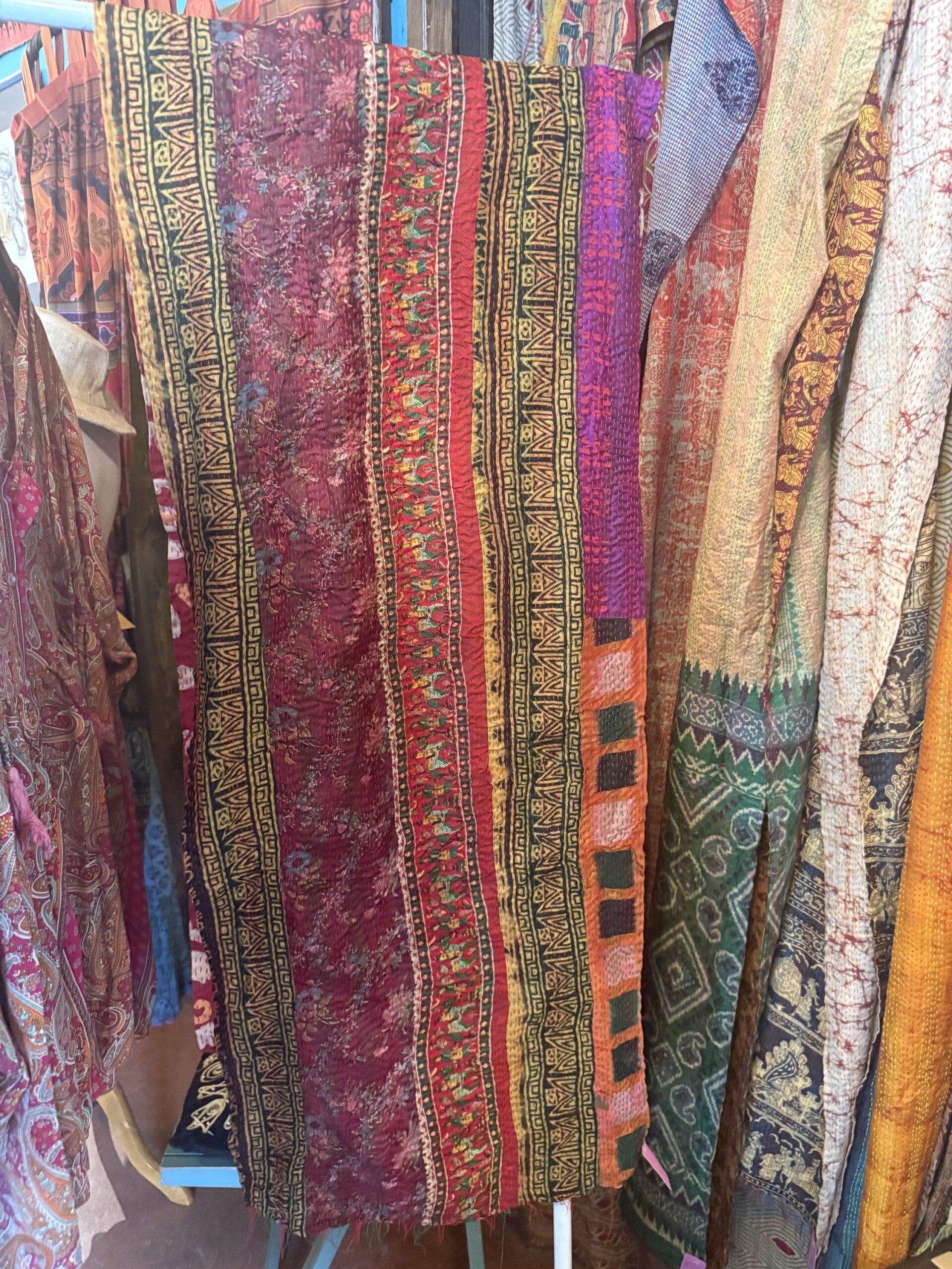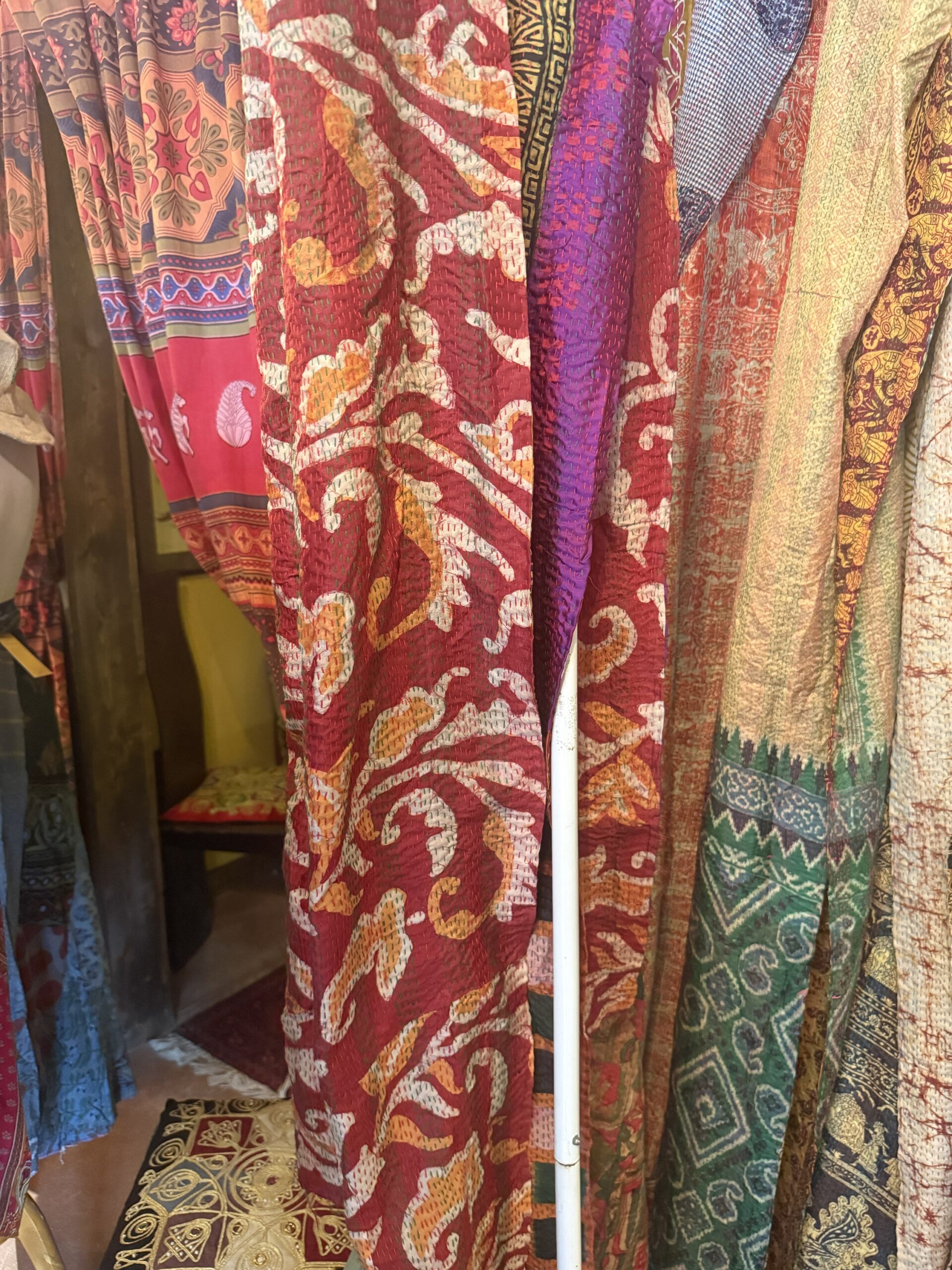 These reversible silk Kantha scarves are perfect for layering! Wear it around your neck on your head around your waist as a sarong or just throw it on your dining room table or on your favorite window!